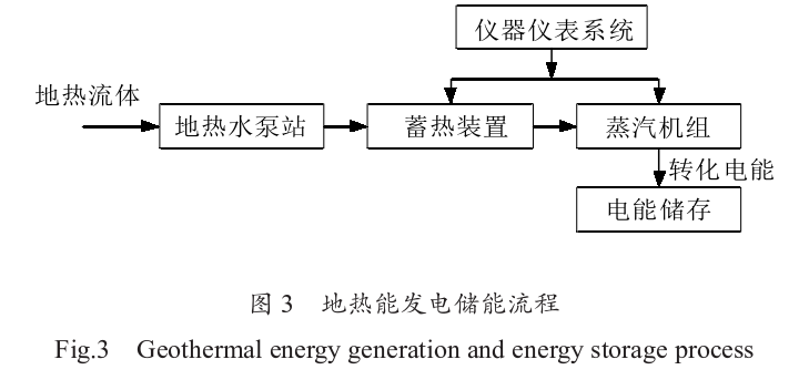 蒸汽機(jī)組是利用地?zé)崃黧w中的熱能來驅(qū)動(dòng)渦輪機(jī)發(fā)電的關(guān)鍵設(shè)備。高溫蒸汽通過管道輸送到蒸汽機(jī)組,推動(dòng)渦輪葉片旋轉(zhuǎn),從而帶動(dòng)發(fā)電機(jī)產(chǎn)生電力。蒸汽機(jī)組的效率和性能直接影響地?zé)崮?/a>發(fā)電系統(tǒng)的整體效益。為了提高發(fā)電效率, 現(xiàn)代蒸汽機(jī)組通常采用高效的熱交換技術(shù)和先進(jìn)的材料,以減少熱能損失和設(shè)備磨損。電池儲(chǔ)能裝置在地?zé)崮?/a>發(fā)電中的應(yīng)用主要是為了平滑電力輸出,提升電網(wǎng)穩(wěn)定性。地?zé)?/a>能發(fā)電具有一定的間歇性和波動(dòng)性,電池儲(chǔ)能系統(tǒng)可以在電力輸出不足時(shí)迅速補(bǔ)充電力,同時(shí)在電力過剩時(shí)存儲(chǔ)電能,以備后用。常見的電池儲(chǔ)能技術(shù)包括鋰離子電池、鈉硫電池和全釩液流電池等。這些電池系統(tǒng)不僅具有快速響應(yīng)能力,還能在一定程度上延長地?zé)?/a>能發(fā)電設(shè)備的使用壽命。地?zé)崮馨l(fā)電儲(chǔ)能流程如圖3所示。