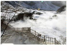 長白山聚龍泉溫泉風景這里也是欣賞長白山霧凇的最佳位置。由于水溫極高,可把自己與雞蛋、老玉米、火腿腸一起“下鍋煮”,會發出翻滾的開鍋聲,用不了多久就能吃到冰天雪地中的別致美味了。 |