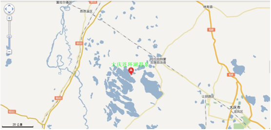 連環(huán)湖溫泉位于黑龍江省大慶市杜爾伯特縣城泰康鎮(zhèn)西南18公里處。杜爾伯特縣泰康鎮(zhèn)位于黑龍江省大慶市北部,北緯46°54′30″、東經(jīng)124°26′30″。東靠林甸縣,南與大慶市接壤,西、北與一心鄉(xiāng)和克爾臺鄉(xiāng)相鄰。是黑龍江省杜爾伯特蒙古族自治縣人民政府所在地,是全縣政治、經(jīng)濟、文化、商貿(mào)、交通的中心。