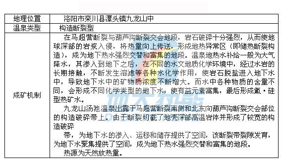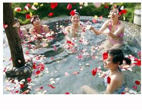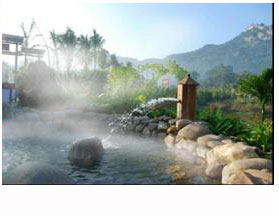 河南省欒川九龍山溫泉風景 九龍山溫泉泉水恒溫69.5℃,時流量56噸,水中富含鉀、鎂、鈣、鍶、鋰等27種礦物質,微含惰性氣體氡和放射性元素鐳,對風濕、類風濕、心腦血管病后遺癥及婦科、皮膚科常見病的浴療效果顯著,被譽為中原第一泉。 |