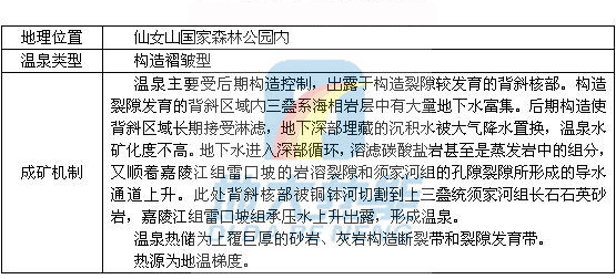 川東仙女山溫泉風景仙女山溫泉地處達州市仙女山腳的銅缽河畔、仙女山國家森林公園,距平灘場鎮1公里。據勘測,該溫泉水質優良,水溫適宜,流量大并且穩定,富含 多種對人體有益的微量元素和礦物質。其中硒和鍶的含量超過國家級規定的標準,對人體具有較好的保健功能。經預測,該溫泉可達國家級溫泉標準,開發的前景廣闊,開發價值高。規劃將溫泉水引至對巖竹海中進行開發,新建接待服務設施,開展游泳、沖浪、醫療保健、休閑度假等活動項目。擴建平灘經溫泉到馬家的公路,新建景區游道,完善電力設施、通訊設施和提高電視收視效果,達到日接待能力上千人次的規模。 |