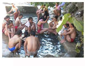 云南躍進橋溫泉風景澡堂會的熱水最高達70-80度,由于是自然溫泉,含有多種礦物質和稀有金屬元素,對人體的某些疾患有特殊的療效,因而慕名前往洗浴的客人遠到西藏也不乏大有人在,只是現在的時間主要是周邊的人們,到三、四月份就會有更多遠方的西域者陸續到來。不少洗浴者一洗就是十天半月,更有甚者能洗兩到三個月,目的是治病,據說還真有不少人治好了疑難雜癥,不然的話怒江“澡堂會”怎么會在印度、尼泊爾、巴基斯坦、新加坡、馬來西亞甚至美國等地聞名遐邇。 |