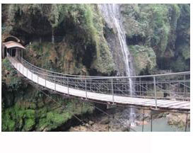 貴州車榔溫泉風景從古至今,男女對河而浴,回歸自然,充滿情趣。溫泉水溫38℃—40℃,水質為碳酸鈣型,有一定的醫療作用。順溫泉而下,車榔河流從一座奇峰中的溶洞穿越而過,可同時通興義、興仁、普安,被人們稱之為“一洞通三縣”奇觀。 |
